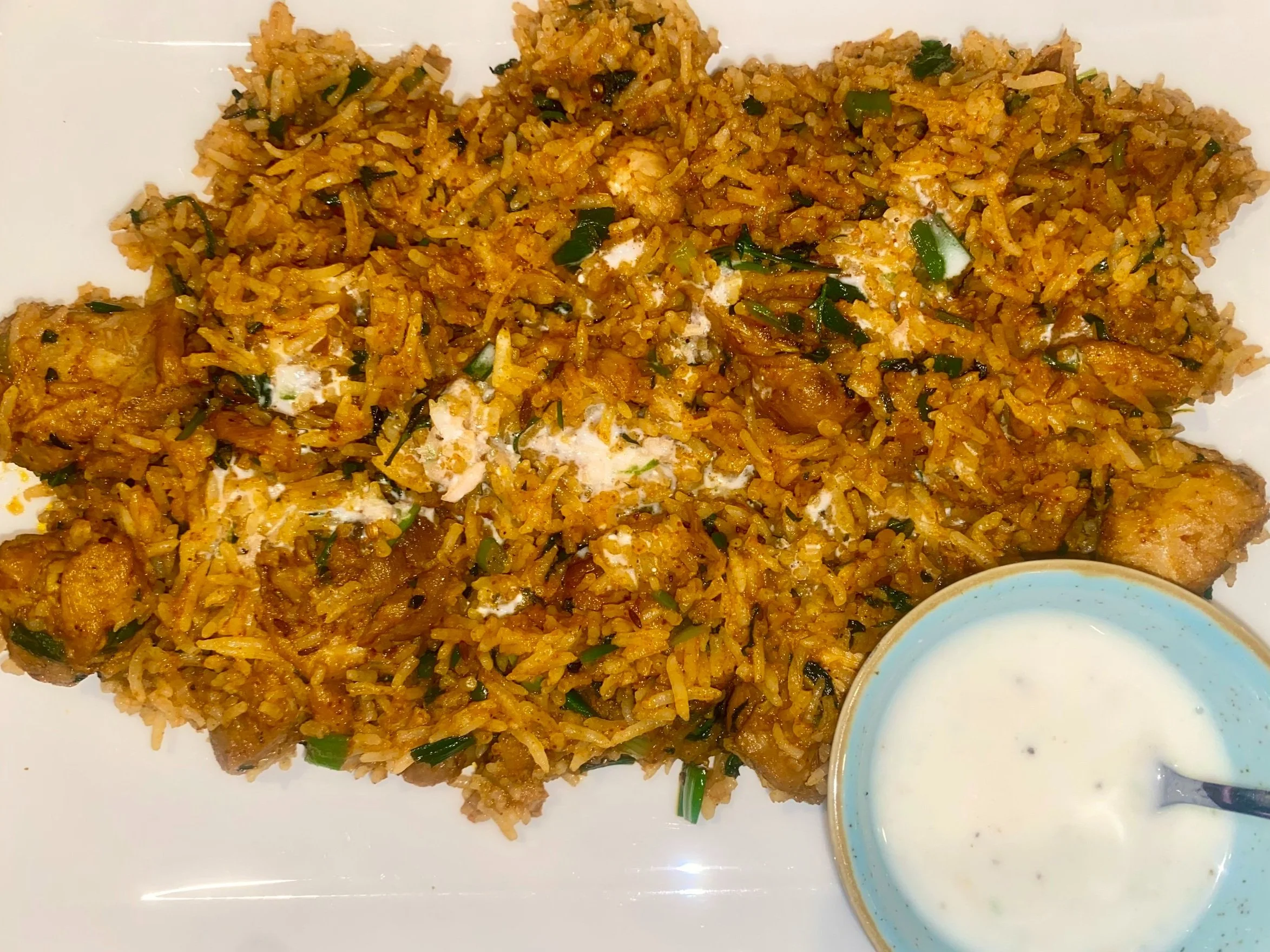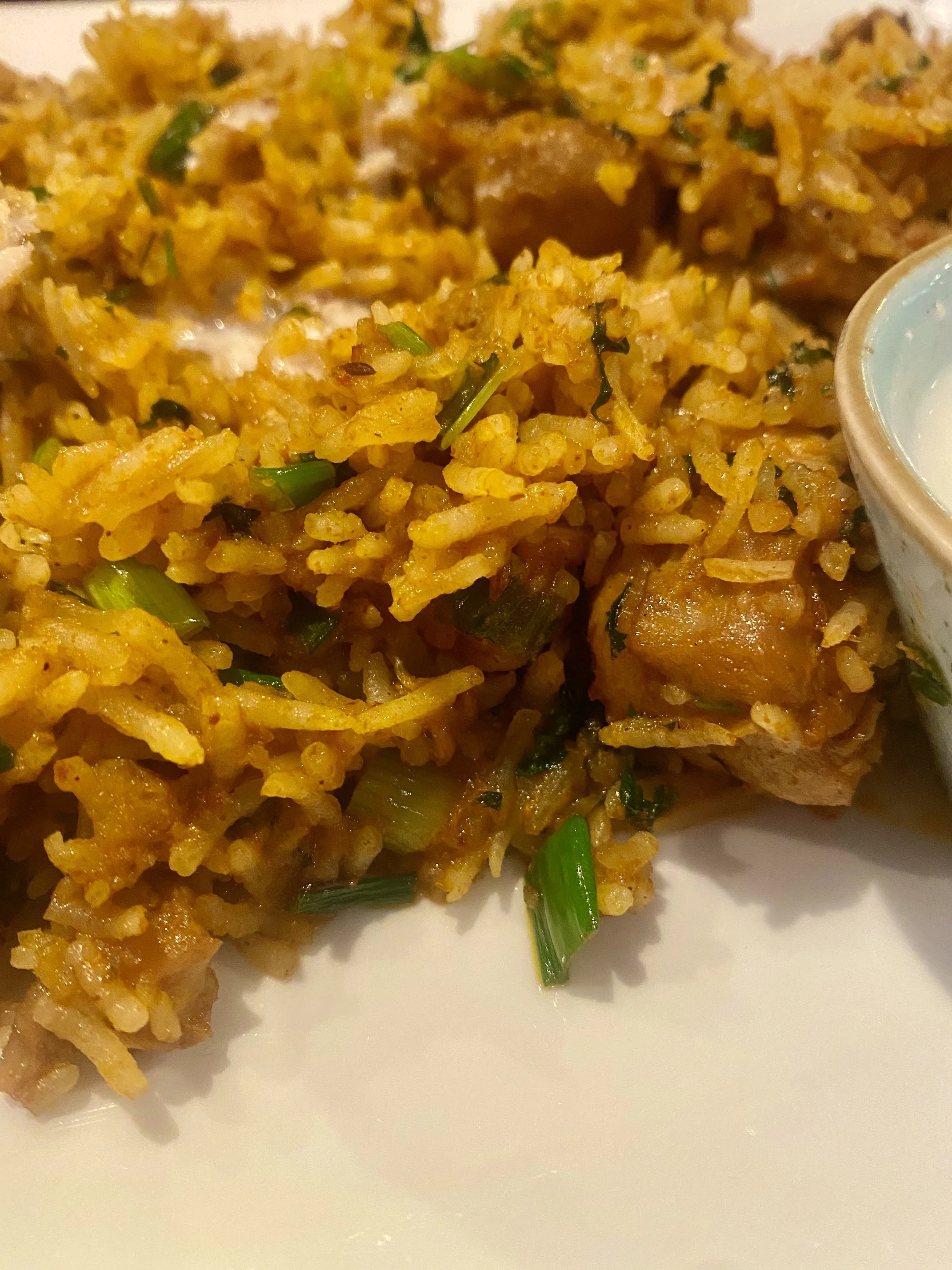 Biryani, a rice dish likely originating in Persia, is a well-loved dish across Iran, Pakistan, and India. I came to fall in love with Biryani during a trip home to Denver, at a restaurant called Mihak. With its incredibly wide array of flavors, soft and tender chicken, and creamy raita to complement each forkful of rice, this dish left me wanting more. Ever since then, I’ve been on a mission to try as many styles of Biryani as possible. The different variations of Biryani dishes use an assortment of rice types, spices, and meat or vegetable bases. Out of all the distinct variations, the one that stands out to me the most is Hyderabadi Chicken Biryani. Using saffron basmati rice, yogurt-marinated chicken, and lots of fresh mint and coriander leaves, this Biryani dish is the perfect balance of spicy, smooth, and fresh flavors. While this dish is relatively labor-intensive, the end result is well worth your time and effort.