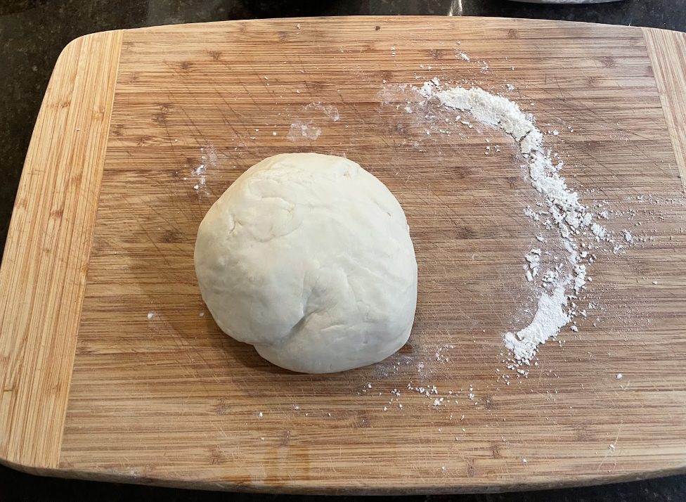 Cut the ball in half, and take one half and form it into a cylinder. Cut into one inch pieces and roll the pieces into balls. Flatten each so it looks like a pancake. Then, use a rolling pin to further flatten the disc by rotating and rolling the dough at the same time. Once it gets to approximately the size of your palm, stop rolling.