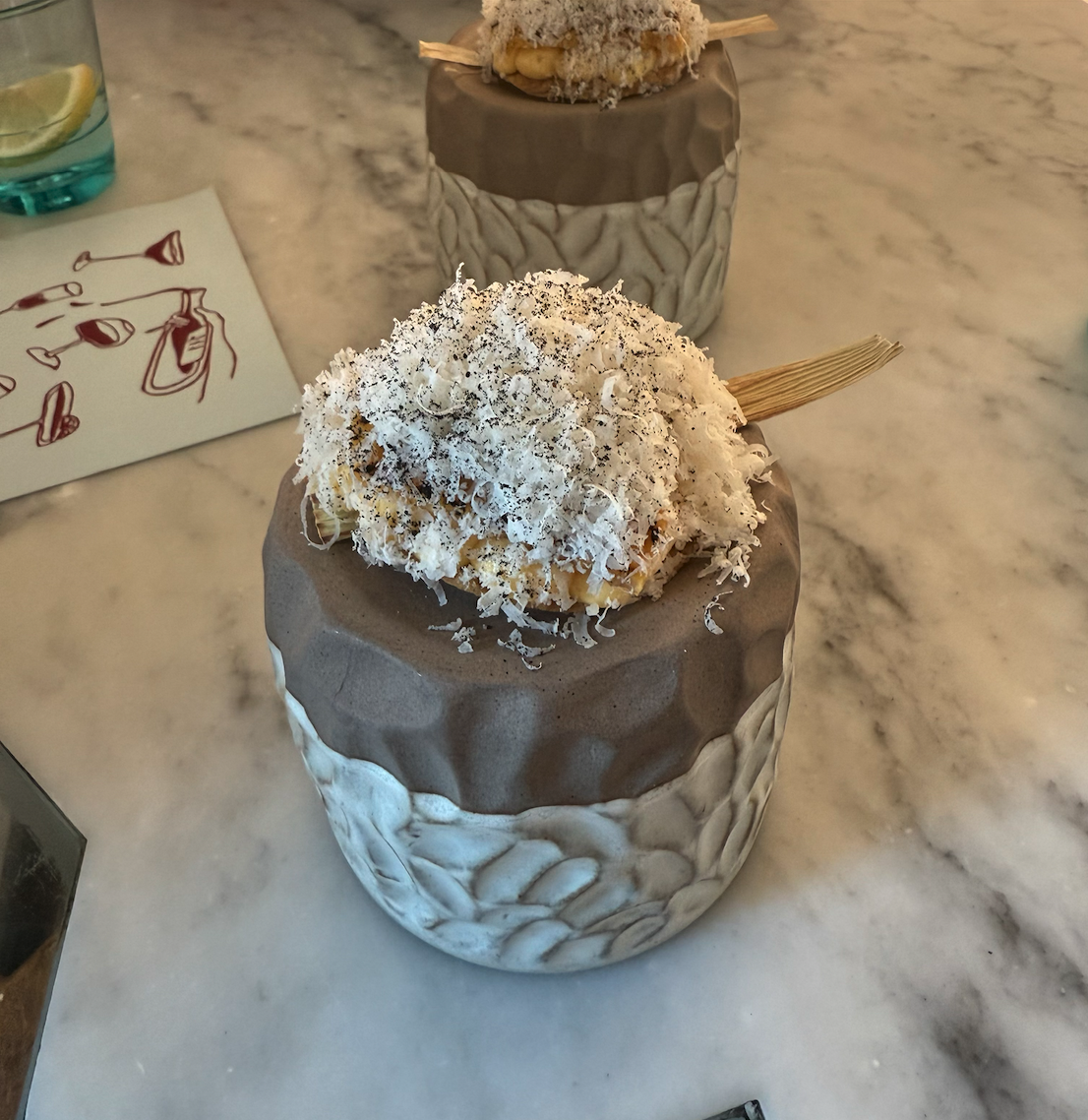 While everything we tasted was absolutely delicious, the "Corn Bomb" was a standout by far. The dish consists of three different textures of corn—creamy, crunchy, and velvety—with the addition of a 36-month aged Parmesan mountain for extra umami. Something you learn at Orfali Bros Bistro is the real meaning of the word "umami". For the unfamiliar readers, umami isn't a taste; it is a feeling. Umami is sometimes also described as the fifth natural taste, along with sweet, sour, salty, and bitter, and is often described as a savory or meaty flavor. Umami adds depth and richness to dishes, creating a sense of fullness and enhancing the flavors of other ingredients. While umami is something you can experience in nearly all inventive restaurants in 2025, Orfali Bros masters it in an unparalleled way. The fact that each bite keeps developing its flavours for a long time truly gives an exciting experience.