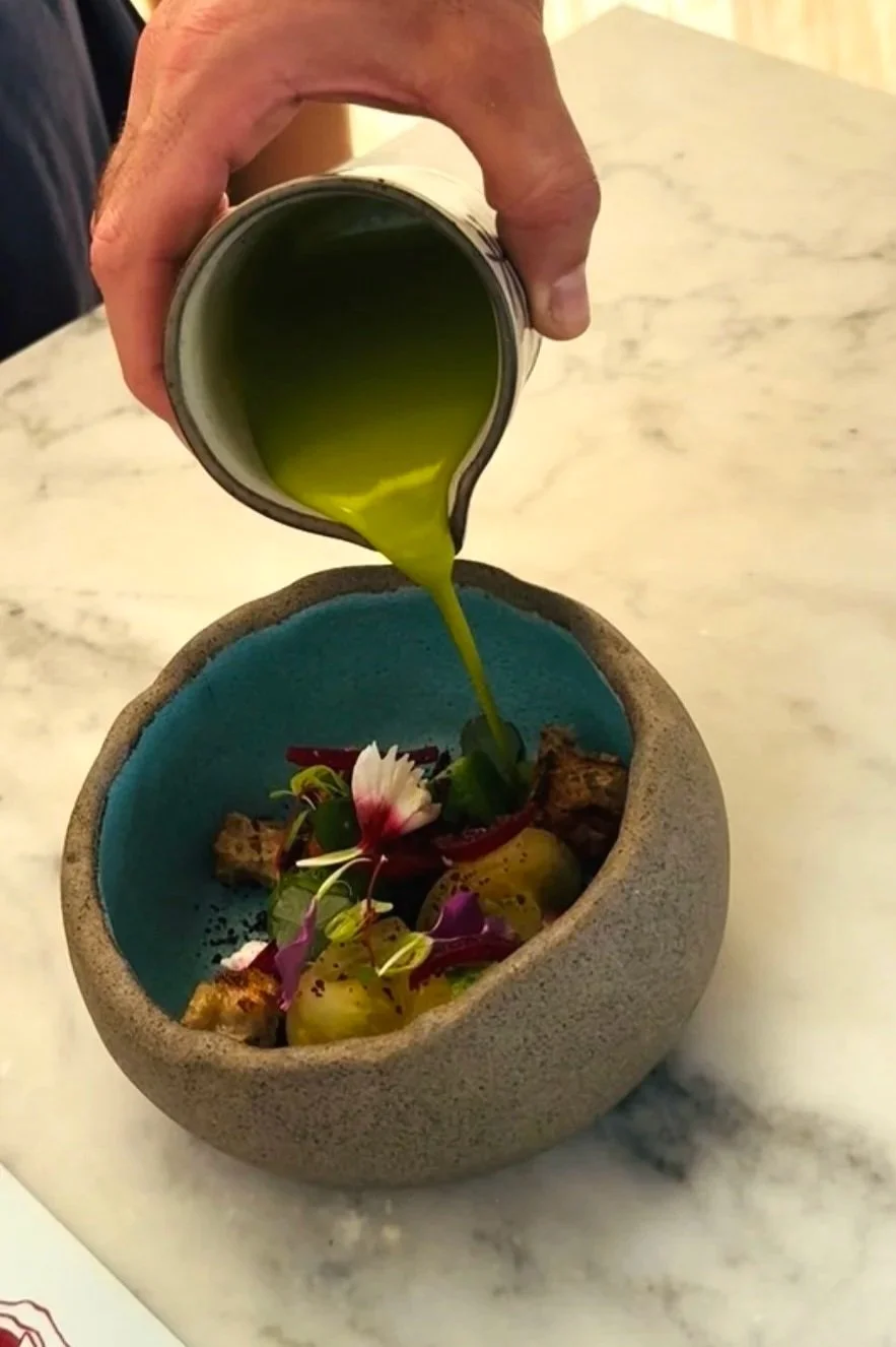 The interior combines elegant modern design with warm, earthy tones, giving the space a cozy yet vibrant feel. Open shelving, a visible kitchen concept, and carefully curated art pieces highlight the playful creativity and dedication to culinary experimentation. Although I expected Orfali Bros to be something special, due to its high placement on the Global list, I couldn’t have imagined how exceptional my personal experience would be. Our conversation with the waiter upon arrival first signaled this. Our waiter described this meal as one that we would not forget, that the phrase "everything is amazing" was one he often used, but never lightly—I can now relate and agree with him. After a lengthy discussion, when he ensured we were familiar with everything on the menu, we began with the small bites.