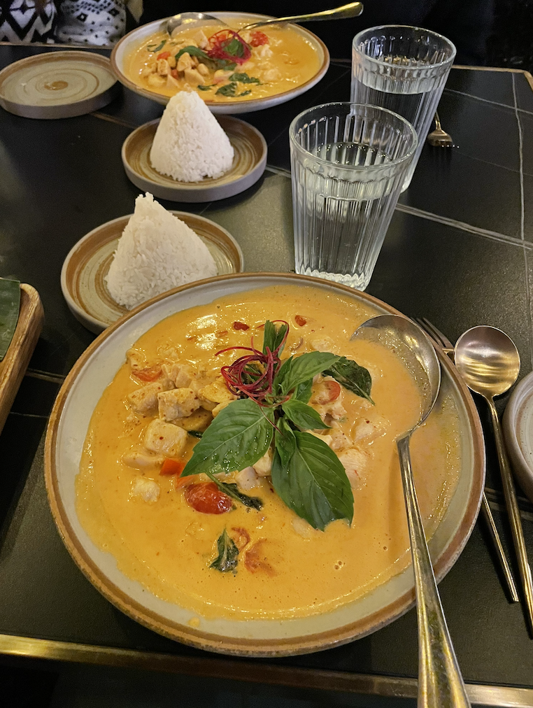 The fan favorite of the night, by far, and my most recommended dish from this restaurant, was the red curry. For starters, I ended up getting two meals out of the dish, which, for thirty dollars, is a pretty sweet deal. The curry had a mild sweetness and coconut flavor, but its main notes were the spice of red chiles and garlic. I believe there were notes of lemongrass, too, which paired nicely. The chicken was also perfectly cooked. The biggest surprise of the dish, however, was the sweet lychees hidden throughout the dish (that I had originally thought were potatoes). I adored this curry and think of it often.