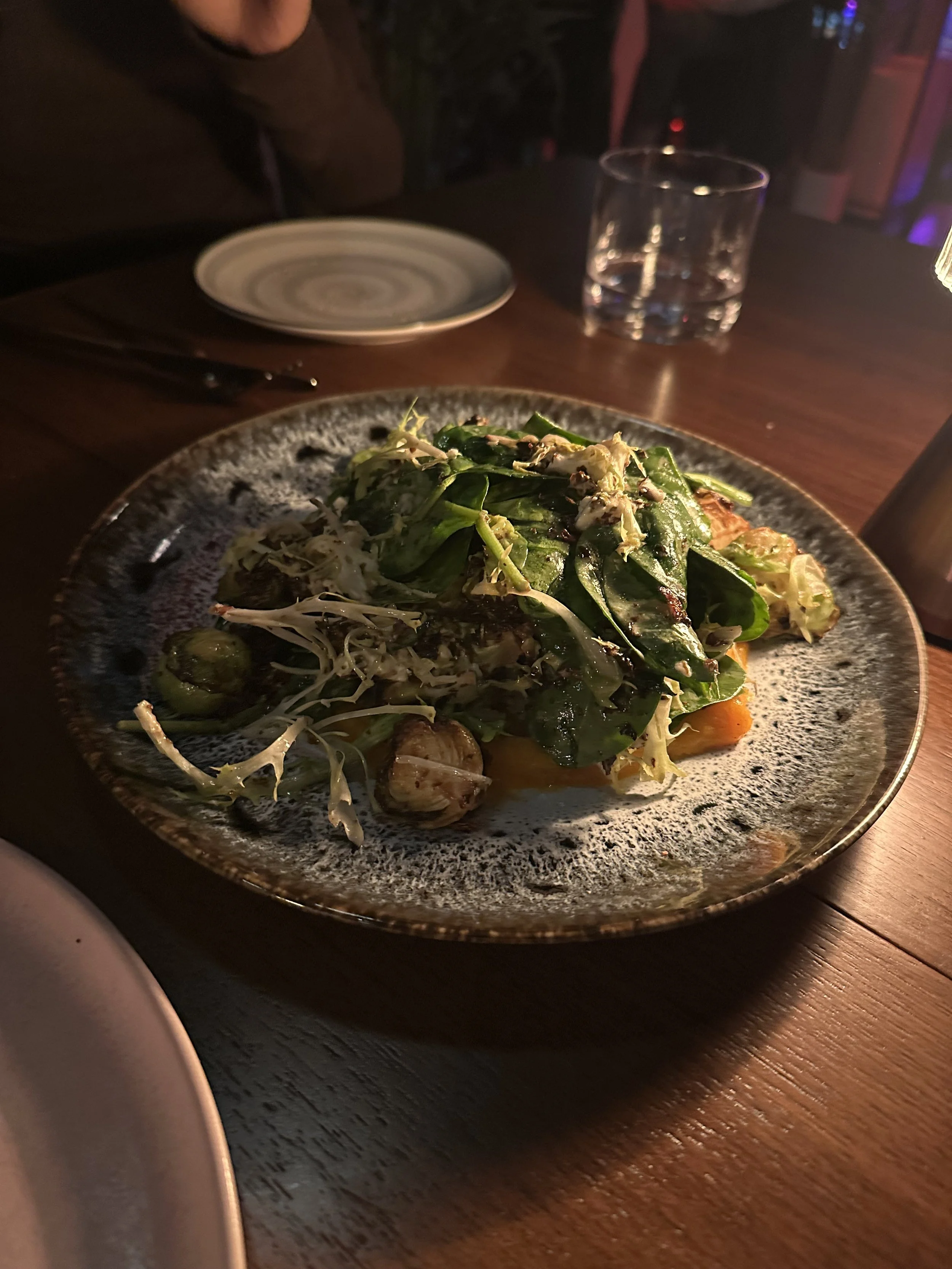 To start, we ordered the Truffle Whipped Ricotta and the Crispy Brussels Sprouts. The ricotta was served with warm bread and a drizzle of honey. The dish had a perfectly delicate balance of honey, ricotta, and truffle. The honey provided just a touch of sweetness, and the ricotta was very smooth and creamy. And of course, a little truffle can never hurt! The Brussels sprouts were strikingly delicious. This cozy salad, served with squash purée, fresh greens, and goat cheese, was a flavor bomb that encompassed a variety of textures. It was well-seasoned, and the sweetness of the purée did not overpower the dish. I would say this dish is a “must order” if you like Brussels sprouts.