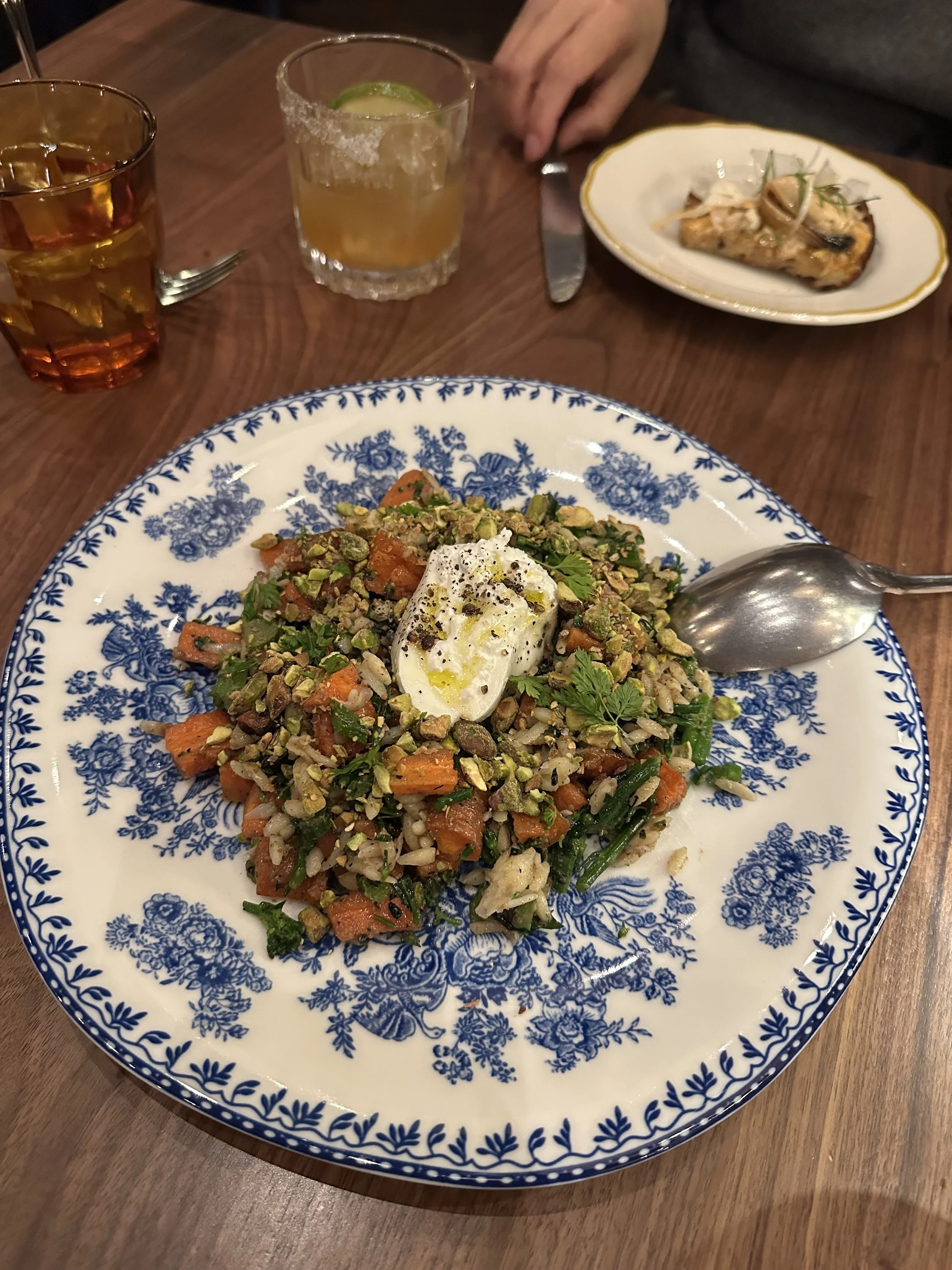 Isolated in a quiet corner of Fulton Market lies Bar Tutto. Inspired by the bustling wine bars and restaurants of Italy, Bar Tutto offers a lively ambience matched with high-quality dining. Surrounded by brick walls, the restaurant exudes the vibe of a classic European café with its marble tables and wooden chairs. The bright lighting creates a warm, welcoming environment that feels less stuffy than most other restaurants! I haven’t heard anyone talk about this place, but it certainly seems like a popular, versatile destination for catch-up meals with friends, after-work munchies with colleagues, or dates with your partner. Bar Tutto operates as both a café and a restaurant serving brunch, lunch, and dinner. I had the opportunity to go for dinner and was thoroughly impressed by their unique flavors and textures. And given my spectacular dinner experience, I would love to try their café and brunch items in the future!